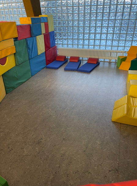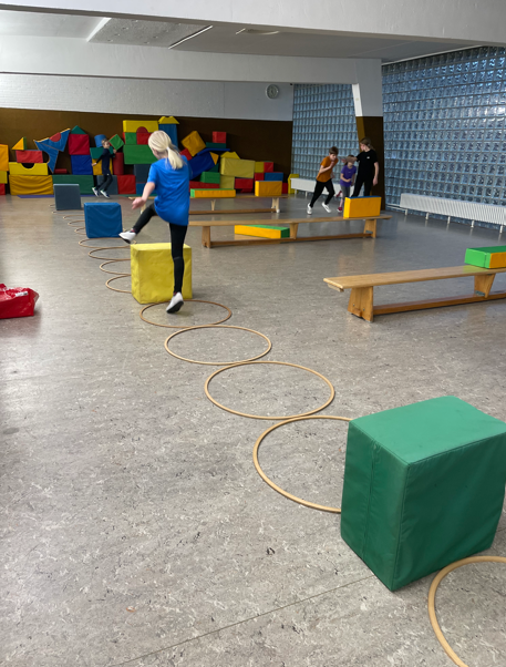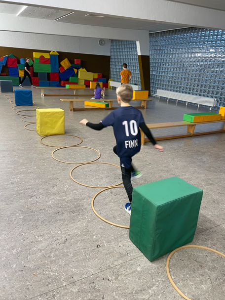 Unser Training am Donnerstag findet in einer kleinen Halle statt und hier beginnt der Spaß schon vor der eigentlichen Stunde! Bevor wir mit dem Training starten, bauen sich die Kinder aus Klötzchen eine große Ritterburg. Doch die Klötzchen sind nicht nur zum Spielen da: später nutzen wir sie auch für unser professionelles Training, zum Beispiel beim Hürdentraining.