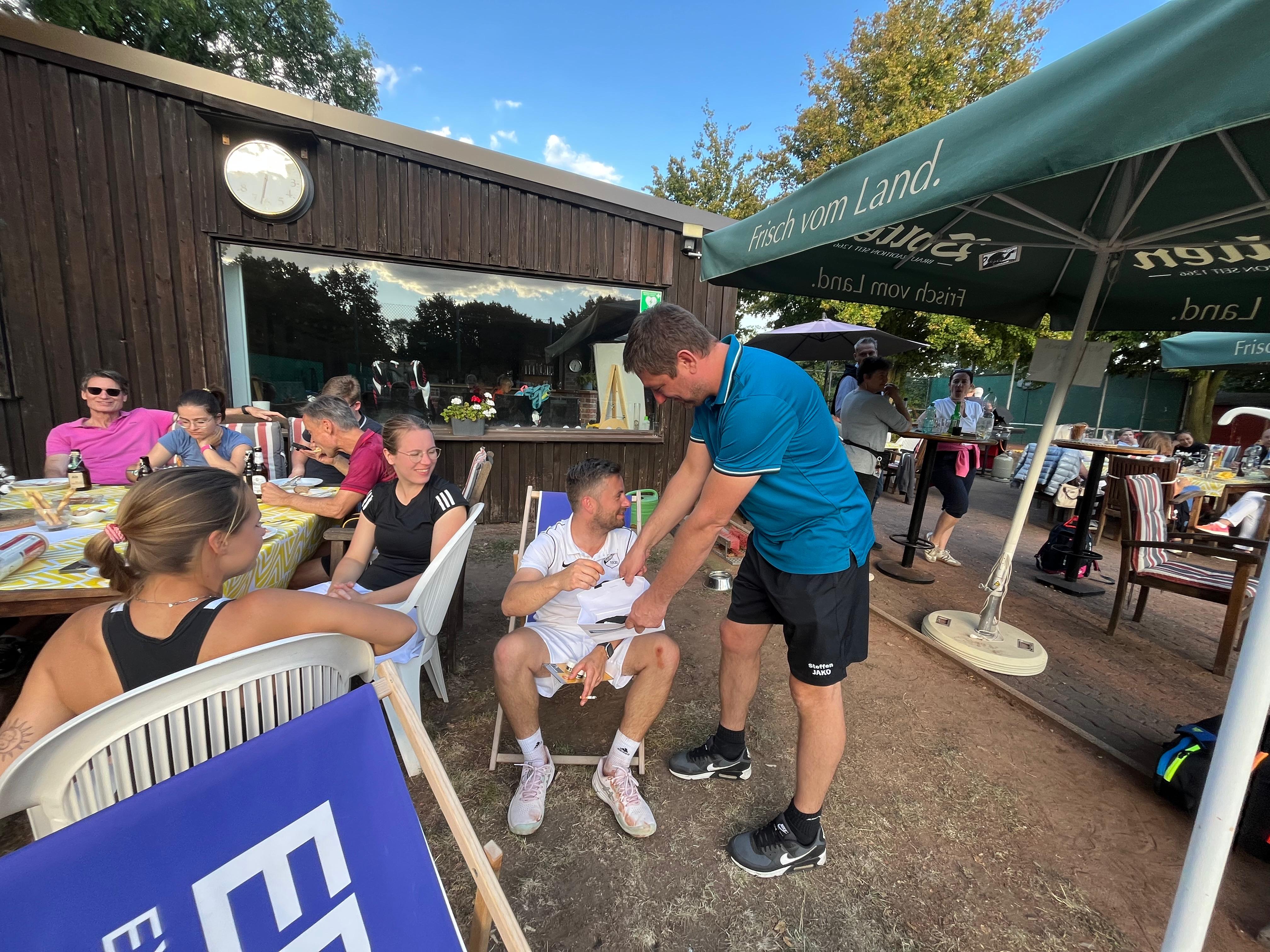Wir bitten Euch darum, die Anmeldegebühren bis spätestens zum 21. Juni mit zuordenbarem Verwendungszweck auf das Konto der Tennisabteilung zu überweisen (IBAN: DE36 3016 0213 3301 2960 10).