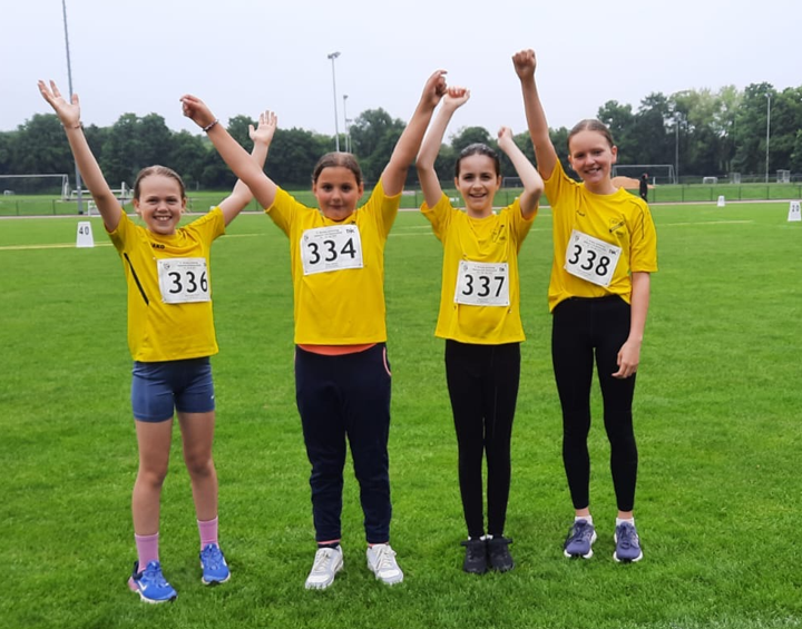 Die U12-Staffel mit Johanna, Anna, Hedi und Sarah lief beherzt und erreichte einen tollen 10. Platz. Die U14-Mädchen Pina, Mia, Frieda und Marli konnten sich mit einer starken Leistung sogar den 7. Platz sichern.