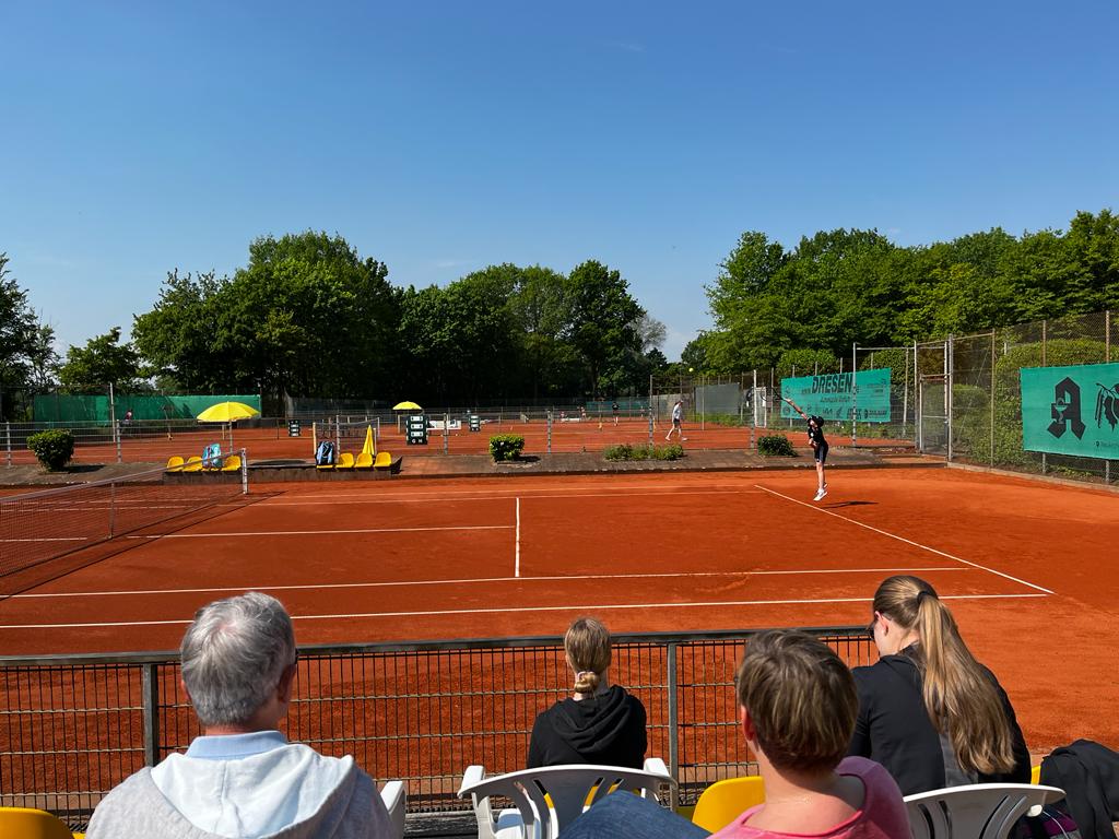 Die Damen gewannen ebenfalls ihre zweite Kreisliga-Begegnung in diesem Jahr. Gegen den HTC SW Neuss hieß es am Ende 5:4. Bereits nach Einzeln hatte es 4:2 gestanden. Isabella Libertus, Lea Krieger, Mannschaftsführerin Julia Nießner und Lena Bublitz gewannen jeweils in zwei Sätzen. Das Youngster-Doppel Isabella Libertus / Lilly Held holte den entscheidenden Sieg des Tages.