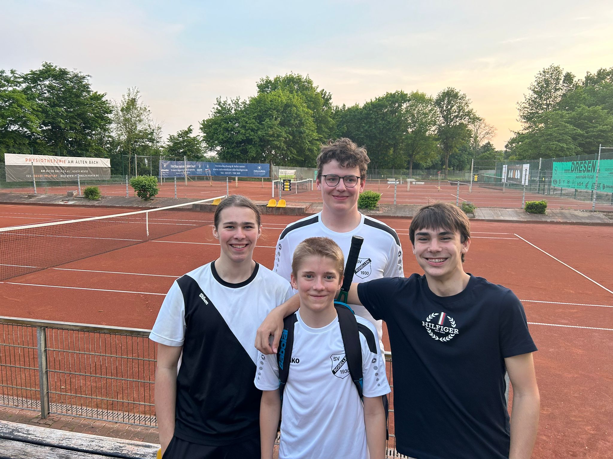 Die U15-Juniorinnen holten ein 3:3-Remis beim Glehner TC II. Johanna Libertus, Tamina Tolles und nach einem dreistündigen Marathonmatch Mila De Blaer gewannen ihre Einzel. In den Doppeln rotierte die Mannschaft noch einmal ordentlich durch, sodass alle sieben SVR-Mädchen zu Einsätzen kamen.