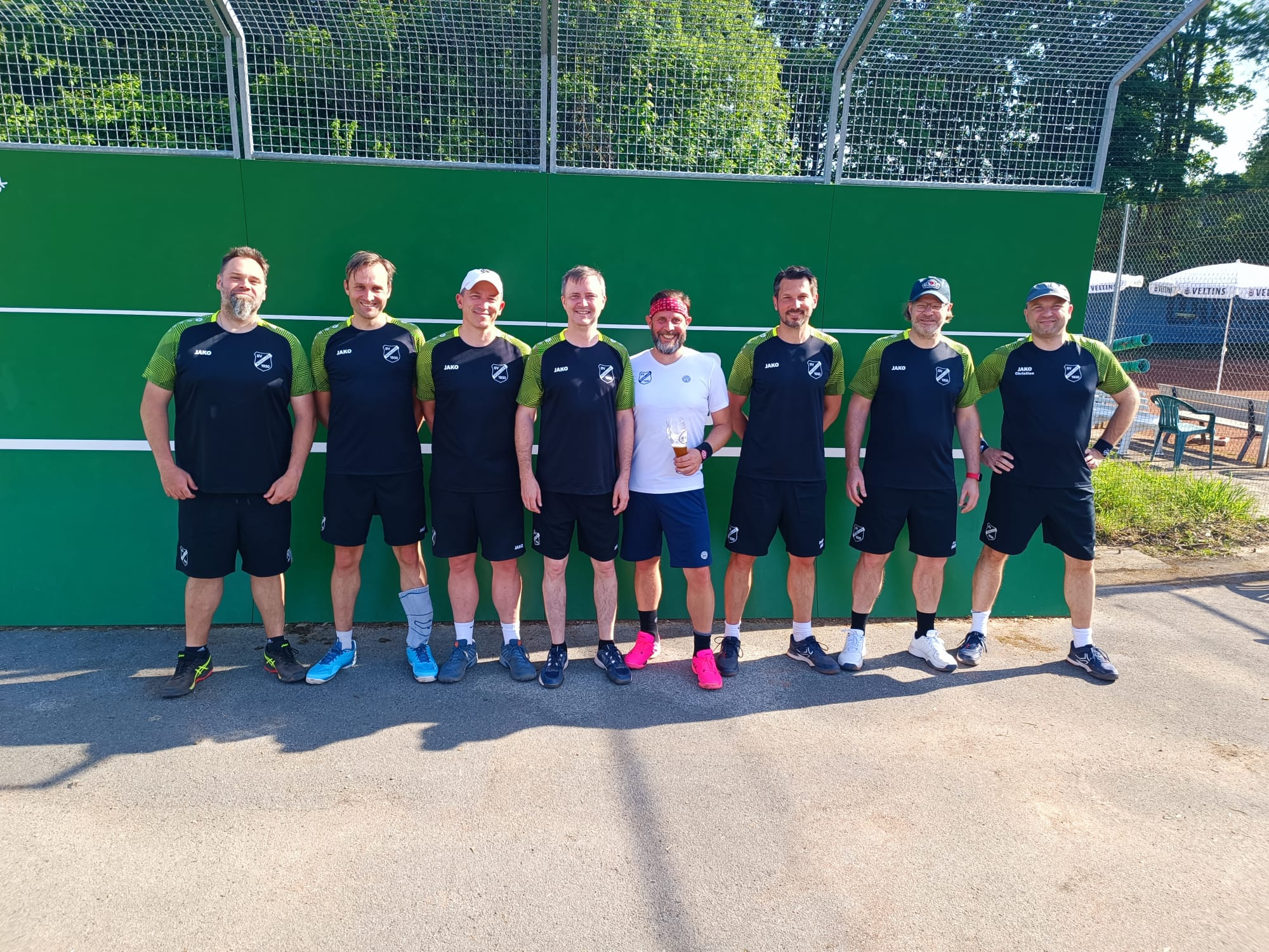 Auch unsere Herren 30 feierten einen Bigpoint im Aufstiegskampf. Sie setzten sich beim Tabellenführer der Bezirksklasse C TC Stadtpark Fischeln mit 6:3 durch. Tim Denz an Position drei, Ali "Jupp" Dayoub" an vier, Max Scharlott an fünf und Gerrit Nolten nach hunderten Marathonballwechseln im Matchtiebreak an eins sorgten für eine starke Ausgangslage von 4:2 nach den Einzeln. Nach einem kurzen Check der Personalausweise ging es in die Doppel, wo durch eine grundsolide Aufstellung nichts mehr anbrannte: Gerrit Nolten/Tim Denz und Harald Jansen/Max Scharlott gewannen ihre Matches souverän. Für Harald Jansen war es nicht nur ein gelungenes H30-Debüt, seine Leistung ist auch deshalb hoch anzurechnen, weil er am Tag zuvor noch bei den Herren 55 im Einzel und Doppel jeweils in den Matchtiebreak gegangen war.