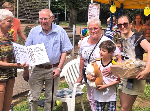 Auf unserer 50-jährigen Jubiläumsfeier Ende Juni 2024 wurde Dirk verdientermaßen für sein langjähriges Engagement mit der goldenen Ehrennadel des Tennis-Bezirks 1 ausgezeichnet – eine Ehre, die bisher nur zwei Persönlichkeiten in unserer Abteilung zuteil wurde. Er zeigte sich darüber merklich berührt.