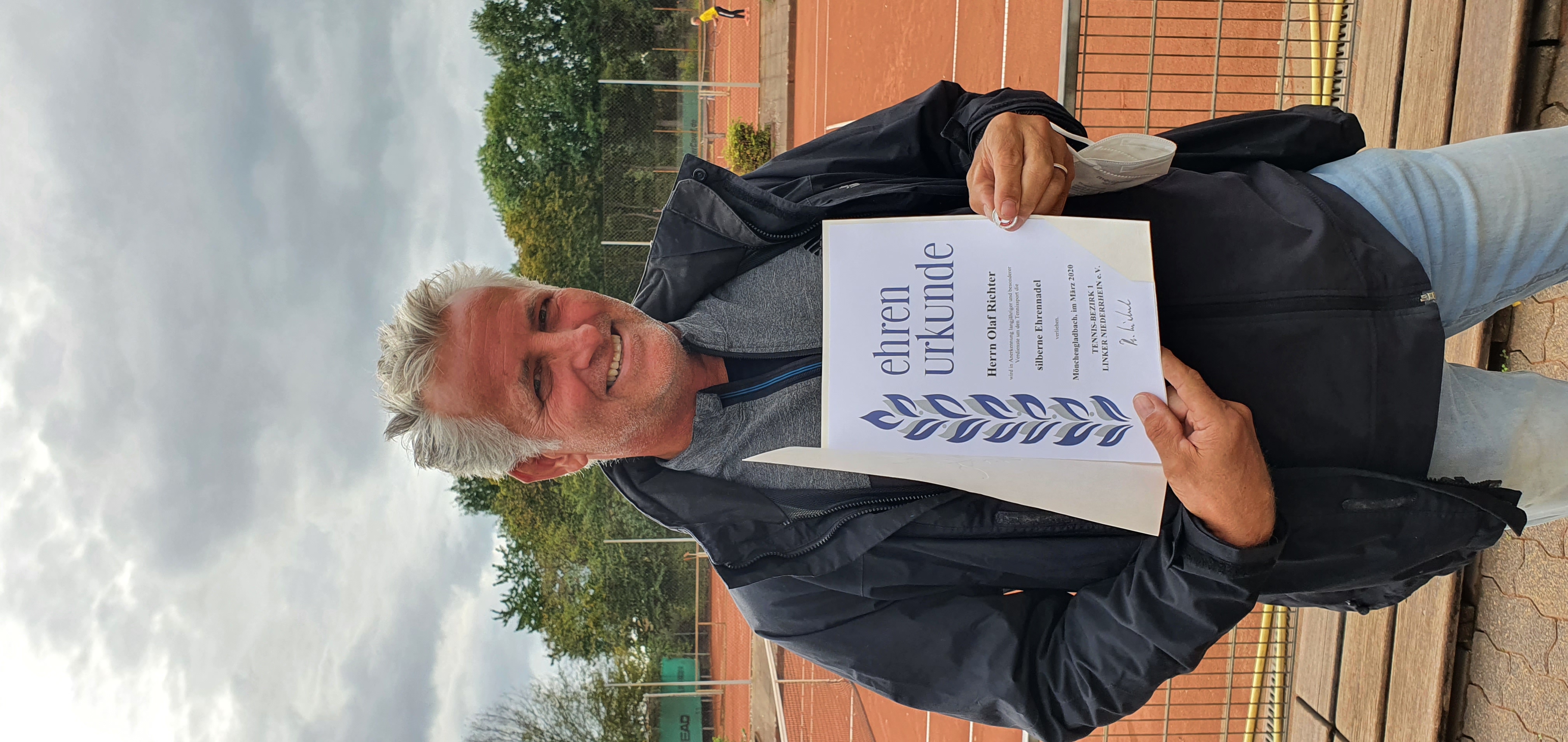 Olaf hat in den letzten 46 Jahren seiner Mitgliedschaft schon nahezu alles gemacht, was in unserer Abteilung nur geht. Er ist Gründungsmitglied, seit 1980 gibt er Trainerstunden und seit rund 30 Jahren ist er mit seiner eigenen Tennisschule in Rosellen aktiv. Er wurde Jugendwart und Medenspieler dieses Vereins und 2014 übernahm er, in damals nicht gerade einfachen Zeiten für unsere Abteilung, die Funktion als Abteilungsleiter und führte die Tennisabteilung in ruhigeres Fahrwasser. Generationen von Rosellenern haben seine Trainerstunden besucht, die Gründung zahlreicher Mannschaften und die Hinführung jüngerer Mitglieder zum Ehrenamt sind sein Verdienst. Olafs „Macher“-Qualitäten, seine offene und kommunikative Art und sein Humor sind vom SV Rosellen einfach nicht wegzudenken.