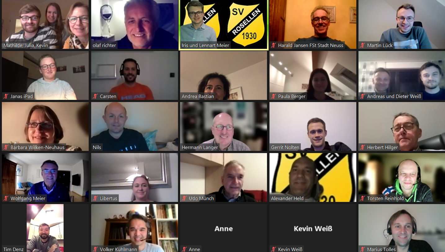Die Tennisabteilung des SV Rosellen hat am 15. März ihre Jahreshauptversammlung abgehalten. Aufgrund der pandemischen Lage fand die Veranstaltung mit 36 Teilnehmerinnen und Teilnehmern über "Zoom" statt. Wir haben die wichtigsten Punkte, die auf der Sitzung besprochen wurden, kurz zusammengefasst.